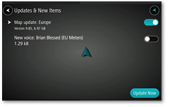 Sobald Sie sich mit einem TomTom-Konto angemeldet haben, können Sie nachsehen, ob Updates verfügbar sind! Denken Sie daran, Ihr Gerät an eine Stromquelle anzuschließen, wenn Sie über Wi-Fi® ein Update herunterladen, sodass ausreichend Strom für das Update vorhanden ist.