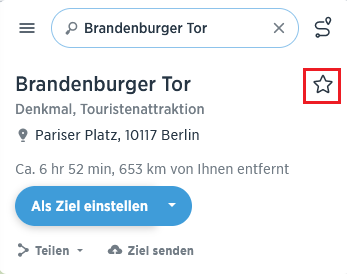 - Klicken Sie auf das Favoriten-Symbol und speichern Sie als Ort, Heimat- oder Arbeitsadresse.