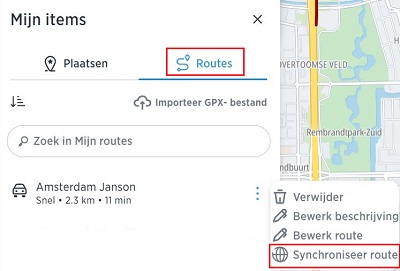 - Selecteer de geïmporteerde route en klik op de drie stipjes naast de opgeslagen route.
